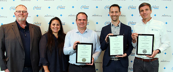 Bob LaRoy and Alyssa Van Delden presented the 2025 AIST Charles W. Briggs Award at AISTech 2025 (left to right): LaRoy, Van Delden, Franck Terrien, Kevin Delsol and Laurent Fahrner.