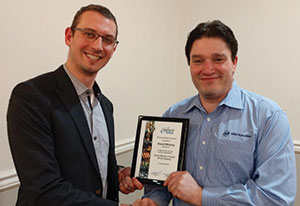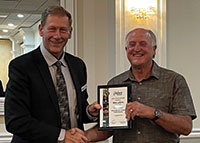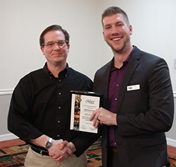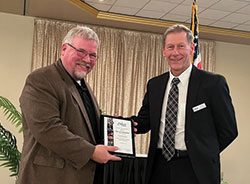 2. Detroit Member Chapter secretary Roger Kalinowsky (right) presented Juronoc (left) with a plaque in honor of his service as chapter chair at the meeting.