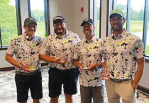 The winning team from Barton Malow Co. celebrated with their first-place trophies at the Detroit Member Chapter golf outing on 2 August (left to right): Kelly Transit, Mark Burke, Chris Wicks and Mike Mueller.