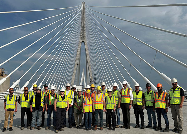 Led by knowledgeable tour guides, attendees were able to walk the bridge to its midpoint, where they received an in-depth overview of the bridge’s innovative design, including its impressive cable system and built-in vibration dampening features. The experience didn’t stop at the deck — the group also explored beneath the bridge, getting up close to the understructure supports and one of the massive expansion joints.