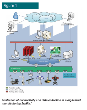 ![]()  | The Fourth Industrial Revolution (Industry 4.0) is the ongoing transformation of traditional manufacturing and industrial practices combined with the latest smart technology.1 Digitalization, smart manufacturing, as well as a few other terms all relate to Industry 4.0. At its core, Industry 4.0 makes use of digital technologies to improve business. This means business and manufacturing information (data) that is natively digital or digitized can come together and be used to solve complex business challenges. Industry 4.0 includes many subcomponents such as big data, artificial intelligence and additive manufacturing. When each subcomponent is examined individually, it is apparent that data collection and analysis is a key feature of Industry 4.0 operations. This article will discuss a few key segments of technologies within Industry 4.0 such as Internet of Things (IoT), autonomous robotics, data collection, big data and cloud computing. ADDITIVE MANUFACTURINGAdditive manufacturing, also known as 3D printing, references the process of creating physical objects through the layering of melted or semi-melted substrate. Common substrates are polymers, composites, metals, ceramics and edible materials. Computer-aided design (CAD) software is utilized to design three-dimensional objects that can then be manufactured. Advancements in additive manufacturing have created many advantages within industrial market segments, including the rapid design and prototyping of equipment and maintenance-related parts. ARTIFICIAL INTELLIGENCE/MACHINE LEARNING Artificial intelligence is a subset of computer science that focuses on the development of systems that can mimic certain human behaviors, such as learning and problem-solving. The advancement of computing systems in the 21st century has enabled the development of systems that can handle much more complex algorithms in much less time. Utilizing machine-learning algorithms, a corporation can now perform tasks that were once unfathomable. A corporation can now easily predict when a bearing will fail on a piece of equipment, identify which customers will potentially leave within the next quarter and hire employees based on their likelihood to succeed within the organization. AGUMENTED REALITYAugmented reality is an interactive experience between the real world and overlaid computer-generated sensory information. This information could be in the form of visual aids, audible queues or even haptic, somatosensory and olfactory forms. Through the implementation of an augmented reality headset, a production worker would not only be able to see and perform their job as usual, but also see additional information about the equipment or process displayed over the task. AUTONOMOUS ROBOTICSAutonomous robots, also known as autorobots or autobots, perform tasks without external influences. The key components and criteria for a robot to be considered autonomous include self-maintenance, sensing the environment, task performance and autonomous navigation. With the implementation of autonomous robotics, corporations can remove process variability while decreasing the need for human interaction related to dangerous tasks. DATA COLLECTIONImplementing data collection across the manufacturing space creates the need for robust data storage solutions. Three common local/on-premises data storage architectures include server-attached storage, network-attached storage and storage area networks.4 There also exist many off-premises options for storing data in the cloud. Choosing the right data storage architecture is directly influenced by the needs and resources of the organization and required reliability and performance needs. Additionally, organizations must find a solution that balances optimal performance with budgetary restraints. BIG DATA/BIG DATA ANALYSISBig data is data that contains greater variety arriving in increasing volumes and with ever-higher velocity. This is known as the three Vs.10 With recent developments in data storage solutions, corporations can now store much more data at a substantially lower cost. The availability of substantially more data allows for richer data analysis and the ability to confirm data veracity. By leveraging the ability to analyze big data, corporations can confidently gain operational insights and implement change. CLOUD COMPUTINGCloud computing is the on-demand online availability of computer resources such as data storage, computational processing and software. Cloud services rely on shared resources and economies of scale to provide a pay-as-you-go service for corporations. Through the utilization of cloud computing, corporations can access data, computational resources and software at an advanced rate while keeping setup and maintenance costs minimal.