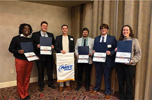 1. Bernie Marrese (left) presented Tyler Rigby (right) with the AIST Premier Scholarship during the Pittsburgh Member Chapter’s Young Engineers Night. 2. The Pittsburgh Member Chapter held its Young Engineers Night on 14 March 2016 (left to right): Bernie Marrese, Pittsburgh Member Chapter chair; Megha Jampani, Carnegie Mellon University; Austen Fradeneck, University of Pittsburgh; Joe Sopcisak, AK Steel Corp. – Butler Works; John Cunningham, Carpenter Latrobe Operations; Nathan Goldblatt, U. S. Steel – Mon Valley Works; and Lauren Keating, United States Steel Corporation. | |