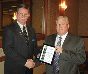 2. Detroit Member Chapter secretary Roger Kalinowsky (right) presented Juronoc (left) with a plaque in honor of his service as chapter chair at the meeting.